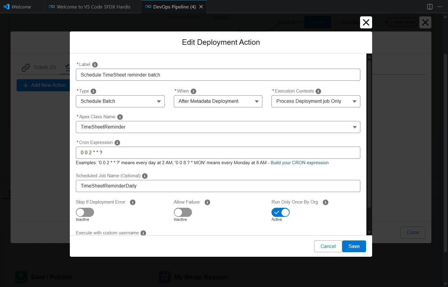 boolean | No | If true the action is recorded in the org (SfdxHardisTrace__c object required) and will not re-run on subsequent deployments. |