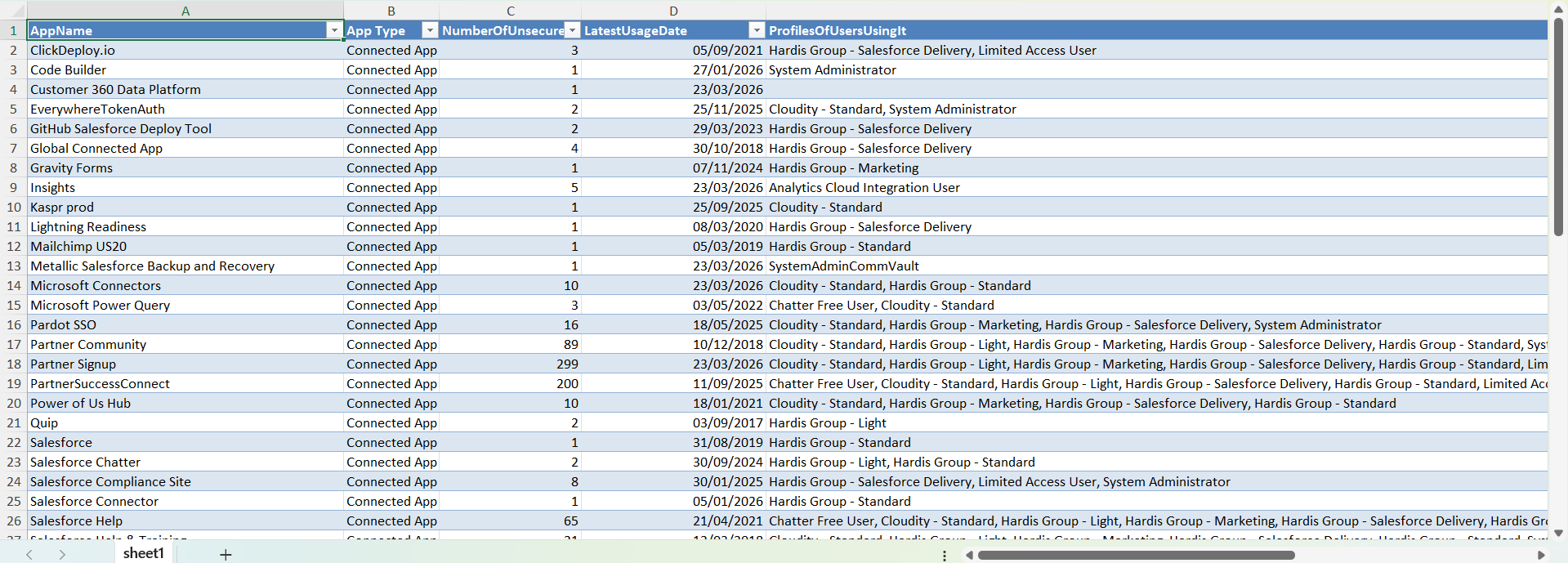 Sfdx-hardis command: sf hardis:org:diagnose:unsecure-connected-apps